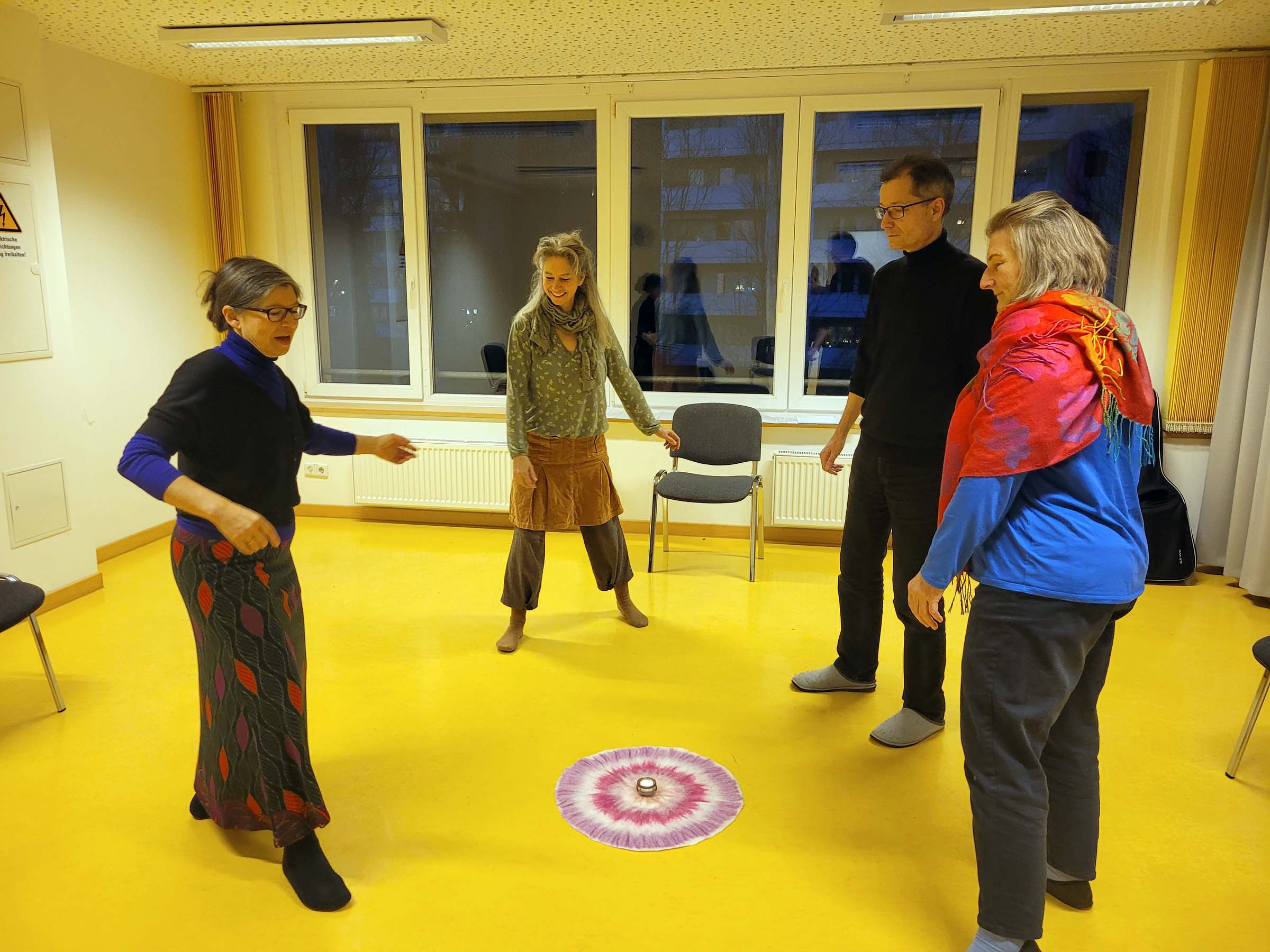 Jeden Donnerstag von 17–18.30 Uhr treffen sich Interessierte im kleinen Bewegungsraum (2. OG) des Bucher Bürgerhauses, Franz-Schmidt-Straße 8-10. Sie singen gemeinsam mit Kursleiterin Olga Irmer heilsame Lieder, Mantren, Lieder aus aller Welt und tanzen Kreistänze. Dass es allen Spaß macht, ist zu spüren: Jeder hatte ein Lächeln im Gesicht.