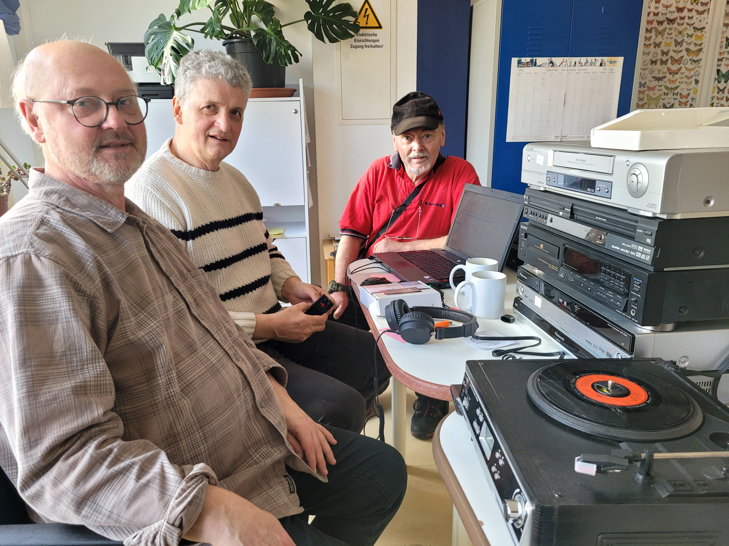 Ganz in diesem Sinne ist jetzt eine weitere Projektidee geboren – das Digitalisierungs-Café. Montags von 14–17 Uhr sowie mittwochs von 11–14 Uhr wird hier vergangenes Leben bewahrt und gerettet. »Wir sind nun in der Lage, gemeinsam Fotos, Dias, Kassetten, Videos, Foto-Negative, Schallplatten, Dokumente etc. zu digitalisieren«, freut sich Wolfgang Düball, der Projektleiter. »Vor einem Jahr begannen wir, gebrauchte Geräte zusammenzusuchen – Plattenspieler, VHS/DVD-Geräte, Kassettenrecorder… – sowie entsprechende Digitalisierer, um die analogen Daten zu digitalen werden zu lassen. Mittlerweile ist alles komplett und wir können das kostenfreie Angebot ab April starten«.