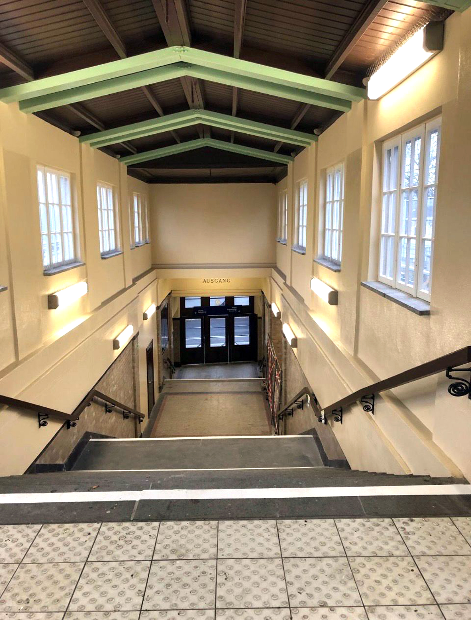 schwalbennestMit der Schließung des Bahnhofs Karow ab 2016 konnte man dessen breite überdachte Treppe noch durch eine Absperrung beobachten, was die Schwalben zunächst nicht wirklich abhielt. Aber wenig später flüchteten die Tiere vor Baulärm und Chemikalien. Das Dach des Aufgangs war verwaist, nur einige Tauben siedelten sich da an. Eifrige Bauarbeiter und Maler rissen die Schwalbennester von den Simsen unterm Dach, reinigten alles schön, entfernten damit aber auch die Lebensgrundlage der Schwalben. Jahrelang nistete hier nichts. Mit der Rücksicht auf die alte Bausubstanz war es während der Rekonstruktion des unter Denkmalschutz stehenden Gebäudes von 1913 eh nicht weit her: Bei der Gelegenheit wurde die historische Beleuchtungsanlage des Empfangsgebäudes, also des eigentlichen Bahnhofs, zerstört, der deshalb bis heute gesperrt ist…
