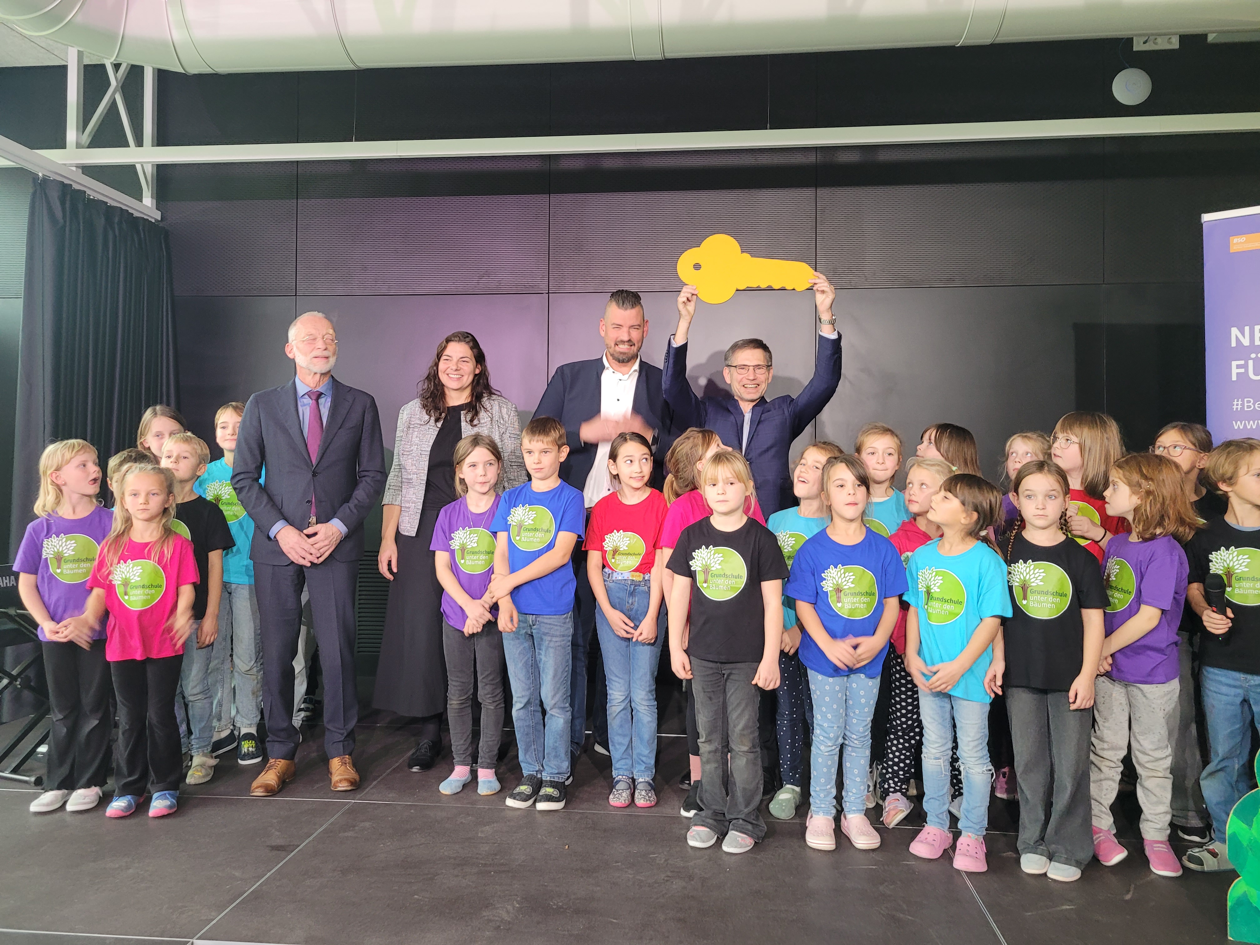 Die Freude über das fertige Meisterstück, das für 49,4 Mio Euro auf dem Areal hinter dem alten Schulbau aus den 1990ern errichtet wurde, ist den Beteiligten anzusehen.
